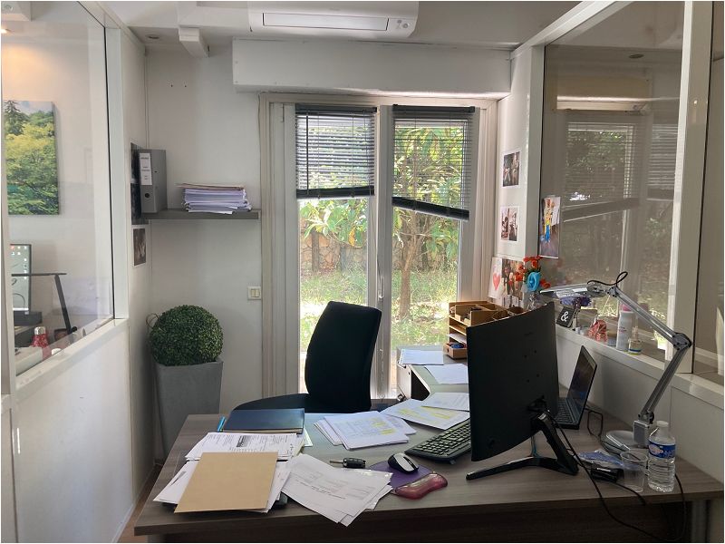loue local commercial d'une superficie de 78 m² ouvrant sur un petit jardin + une grande réserve de 90m² située au sous-sol.