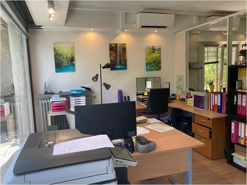 loue local commercial d'une superficie de 78 m² ouvrant sur un petit jardin + une grande réserve de 90m² située au sous-sol.